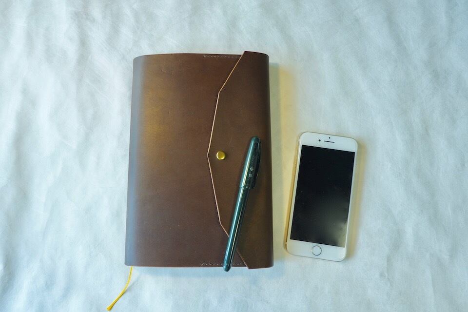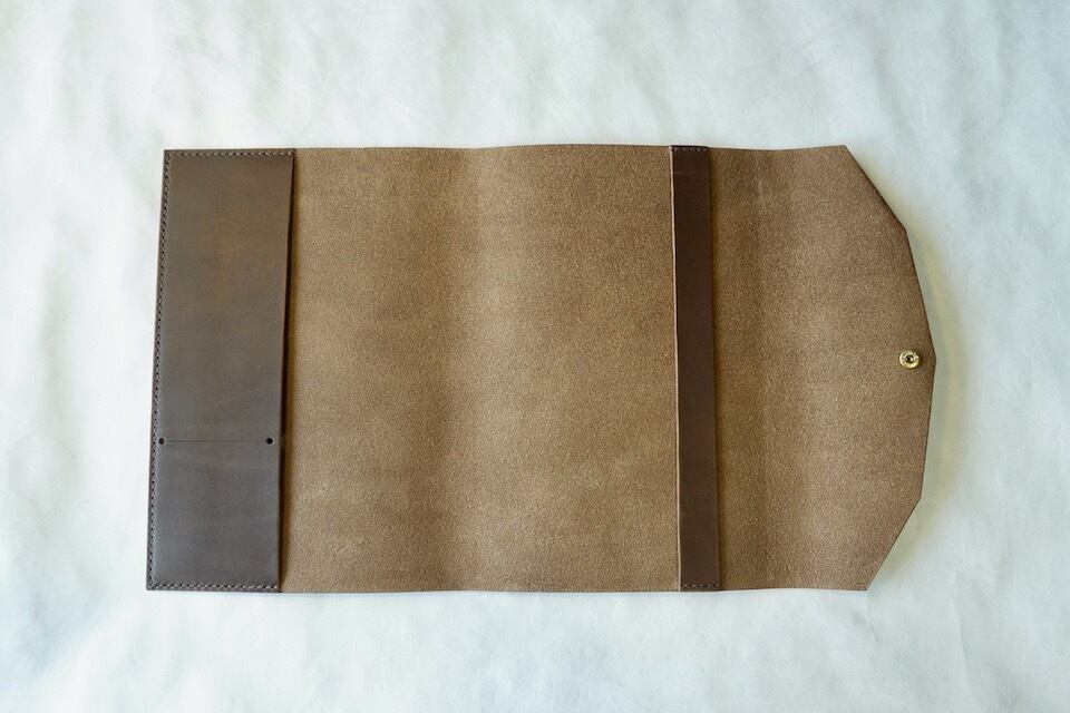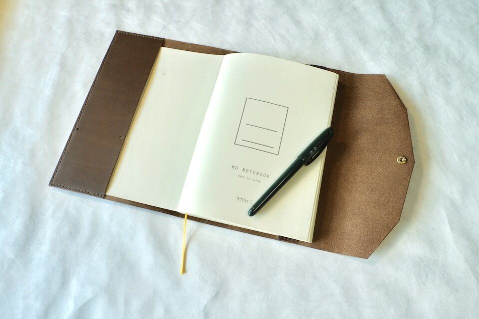 大切なノートや本を汚さないよう、封筒のように包み込むデザインのカバー。