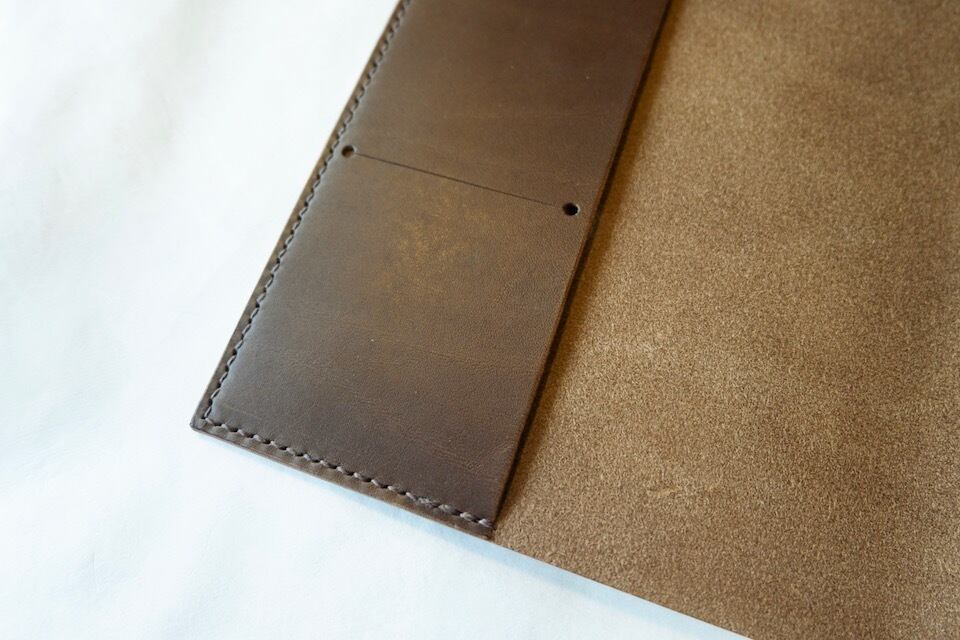 左側ポケット、右側ベルトにてノートを収納