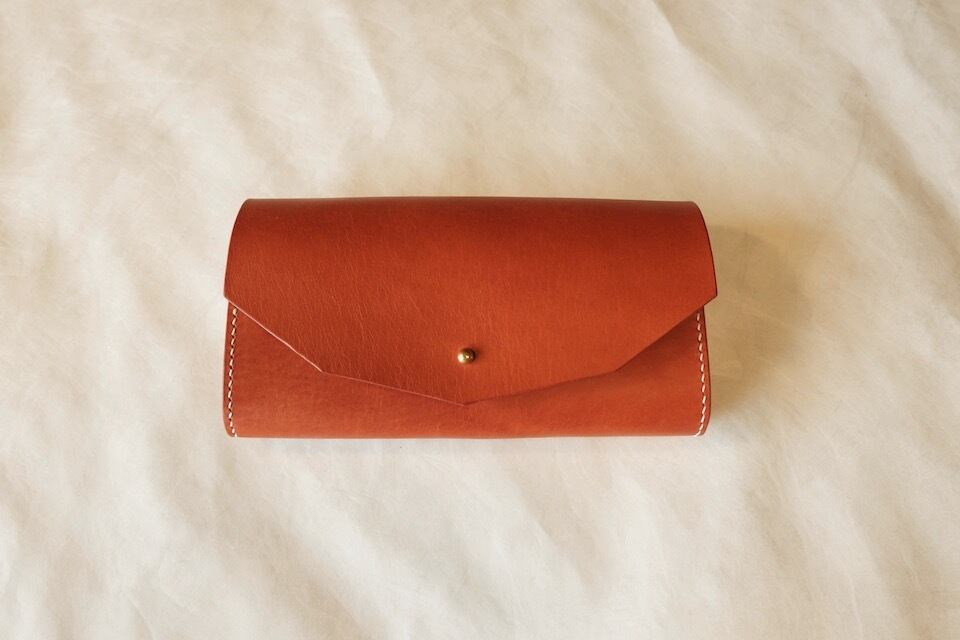【カスタム事例】栞の長財布 Oil leather Brown × 白 糸
